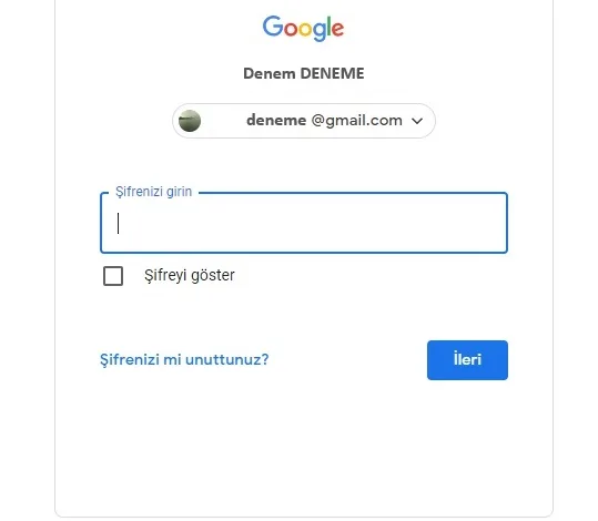 3. Açılan ekrana mail şifrenizi girin ve ileri seçeneğini seçin.