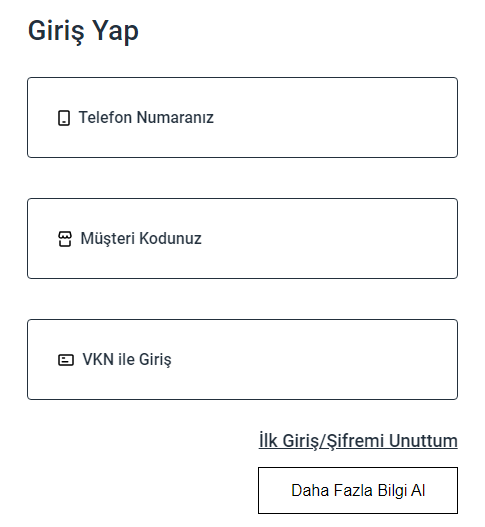 - “Müşteri Kodunuz” yahut “Telefon Numarası” alanına müşteri numaranız adresinizi yahut telefon numaranızı girin.
